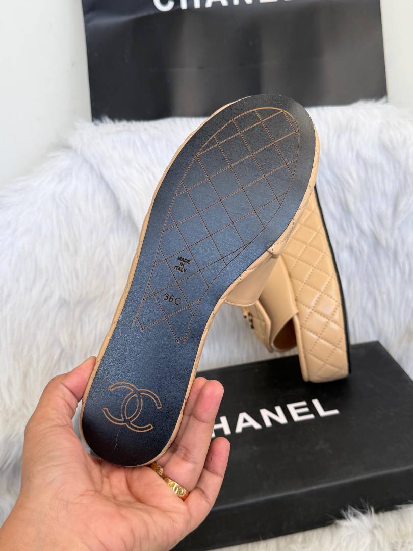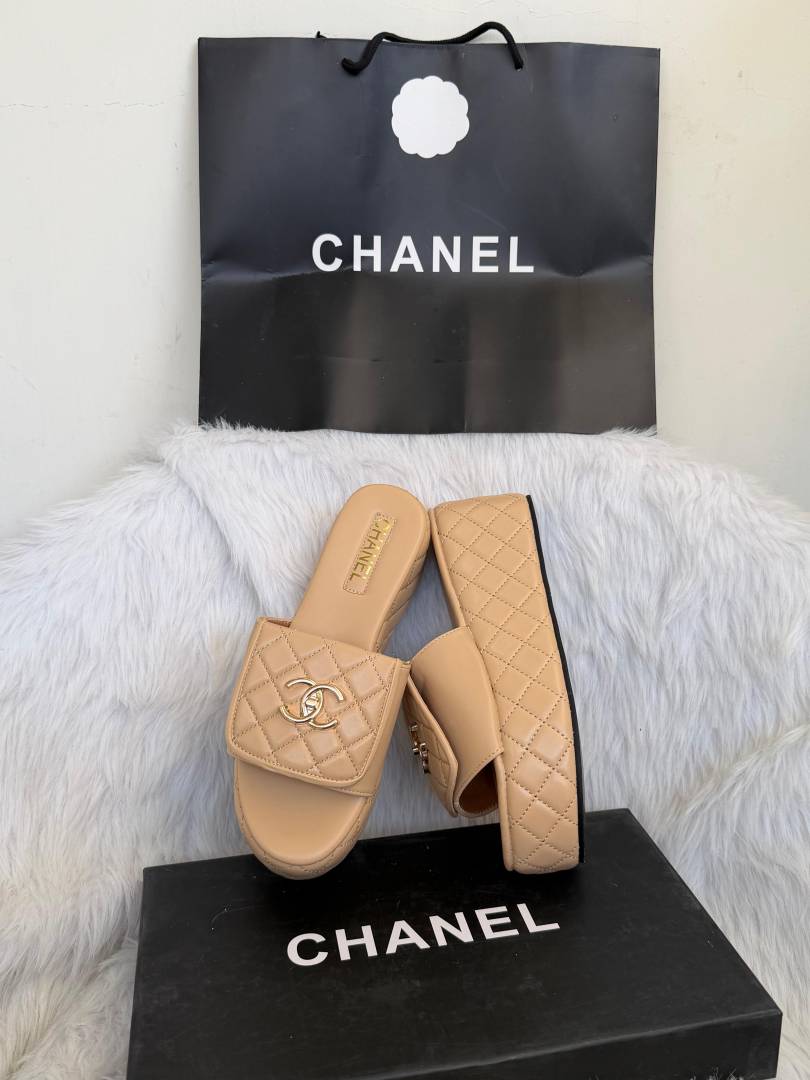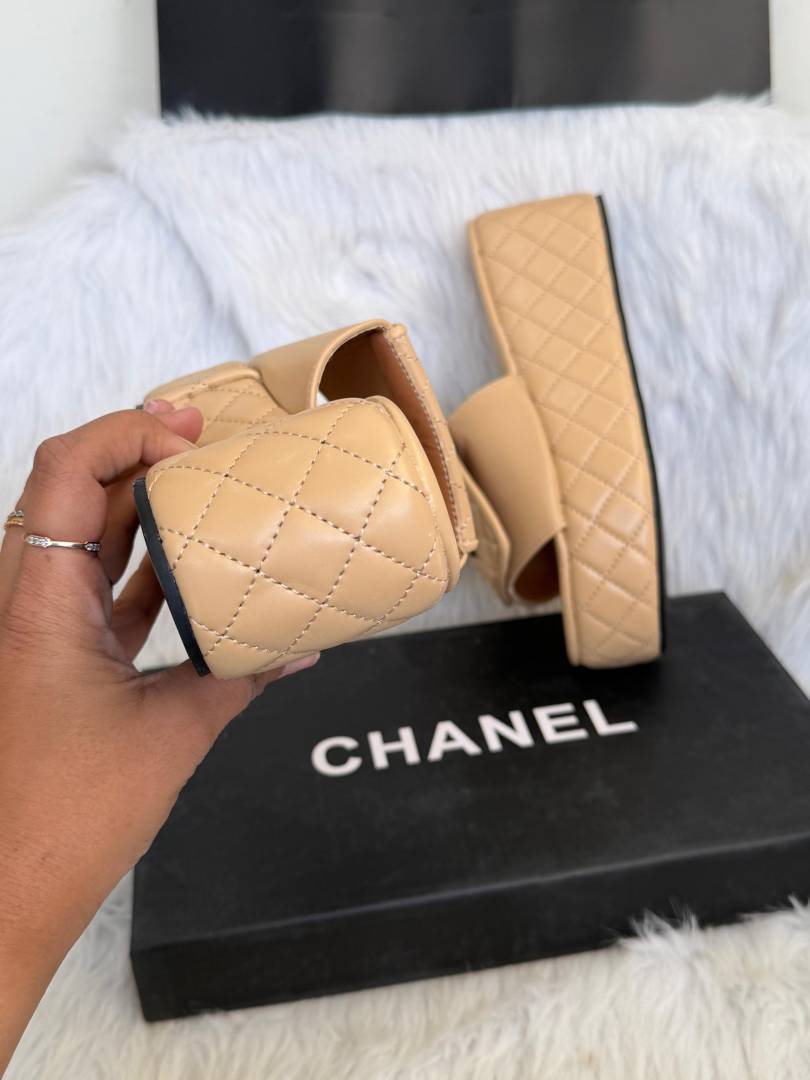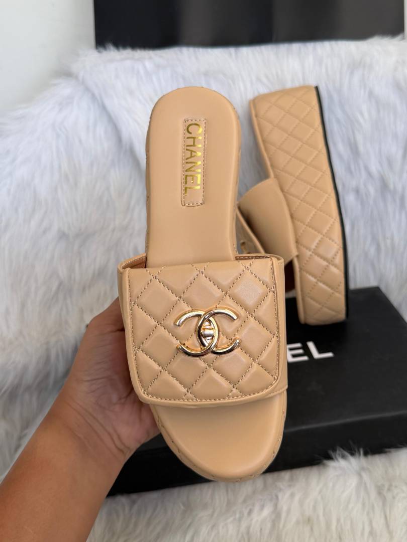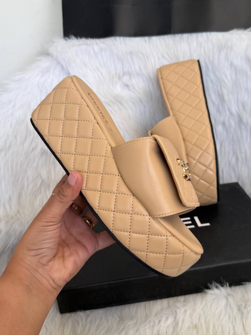 • Chanel_Twist_Lock_Khakhi_platform_Slides_For_Women_With_Original_Box_And_Carry_Bag