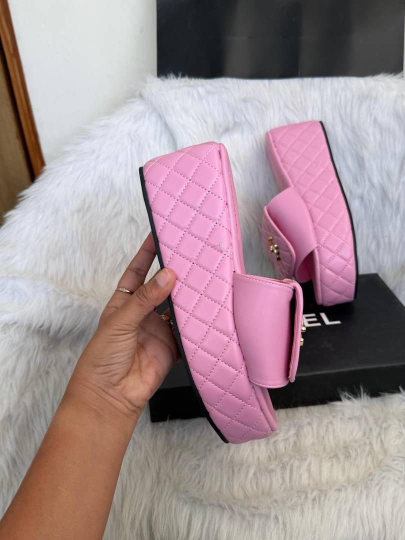 • Chanel_Twist_Lock_Pink_platform_Slides_For_Women_With_Original_Box_And_Carry_Bag