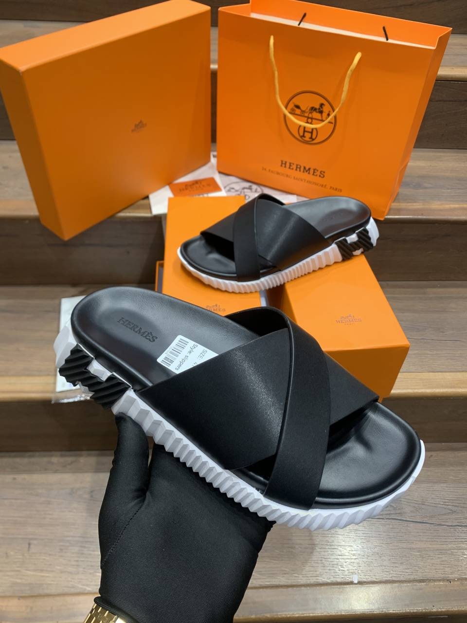 HERMES INFRA BLACK WHITE PREMIUM SLIDE