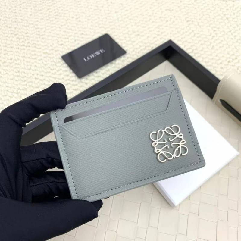 Loewe Card Holder Case Wallet Anagram Hardware Silver With Dust cover & OG Box L1109 Grey